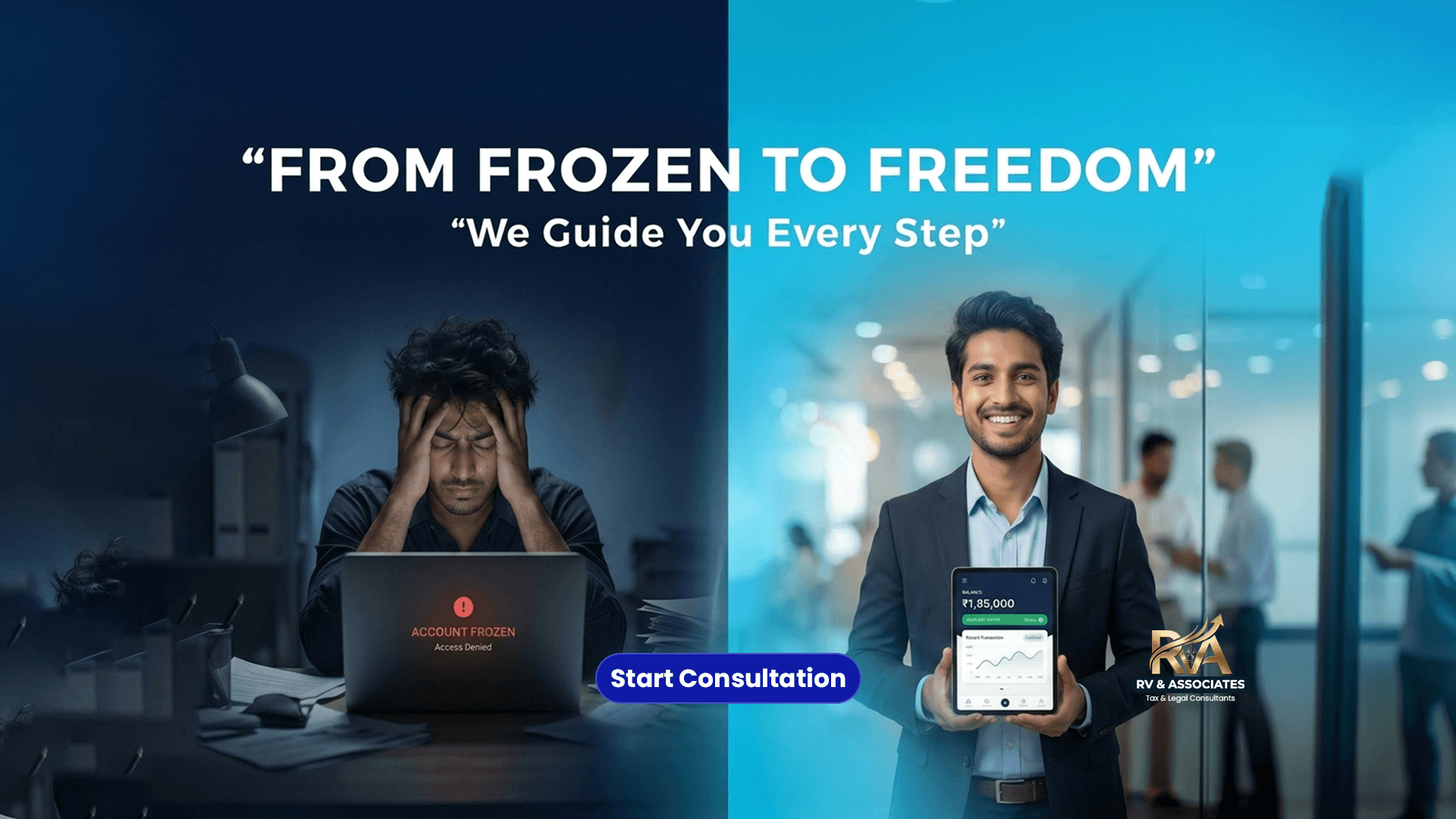 India's first online consultation portal that helps you unfreeze your bank account and fight back against wrongful cybercrime flags. Free initial consultation. 99.99% success rate. Resolution in 15 working days.